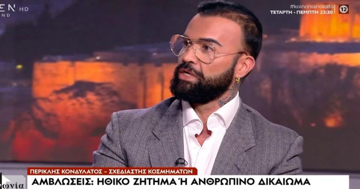 Ο Περικλής Κονδυλάτος βρέθηκε καλεσμένος στην εκπομπή «Κοινωνία Άνω Κάτω» στο OPEN και τοποθετήθηκε δημόσια σχετικά με το ζήτημα των αμβλώσεων, με αφορμή τις δηλώσεις της Μαρίας Καρυστιανού.